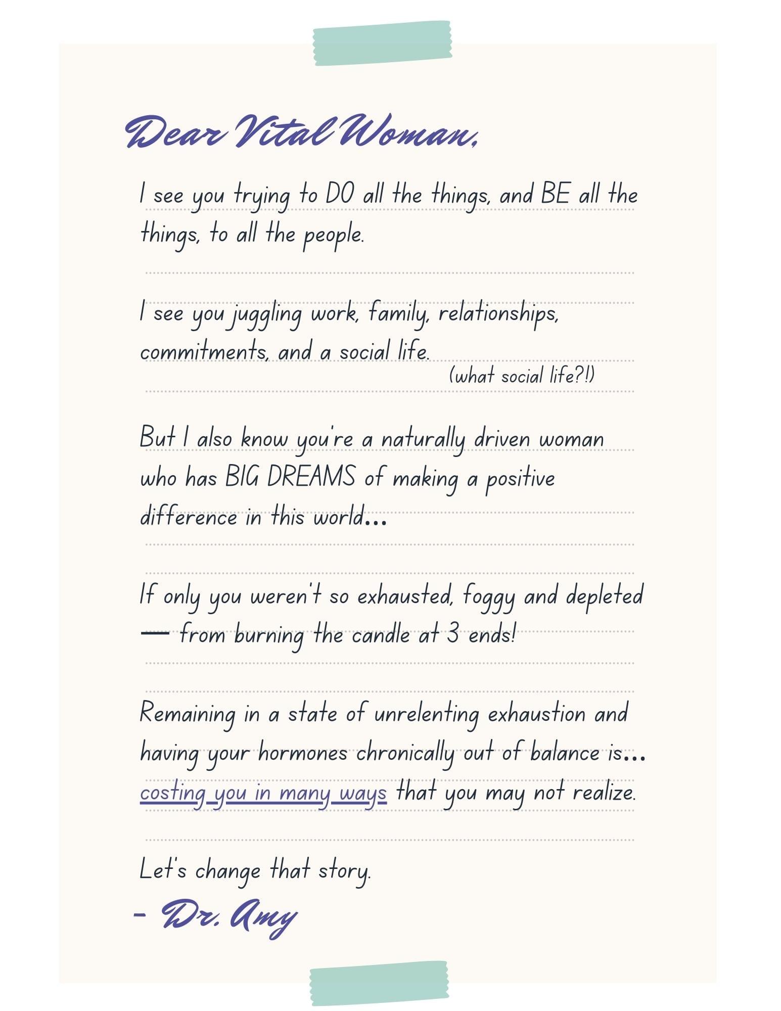 Dr. Amy Day, ND, a Women’s Health & Hormone Expert, and founder of The Women’s Vitality Center.